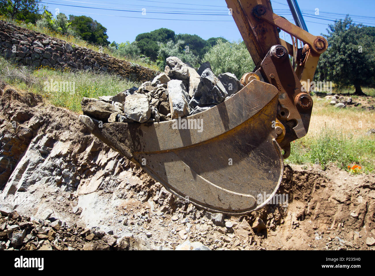 Digger Bucket Full Of Rocks Stock Photo Alamy